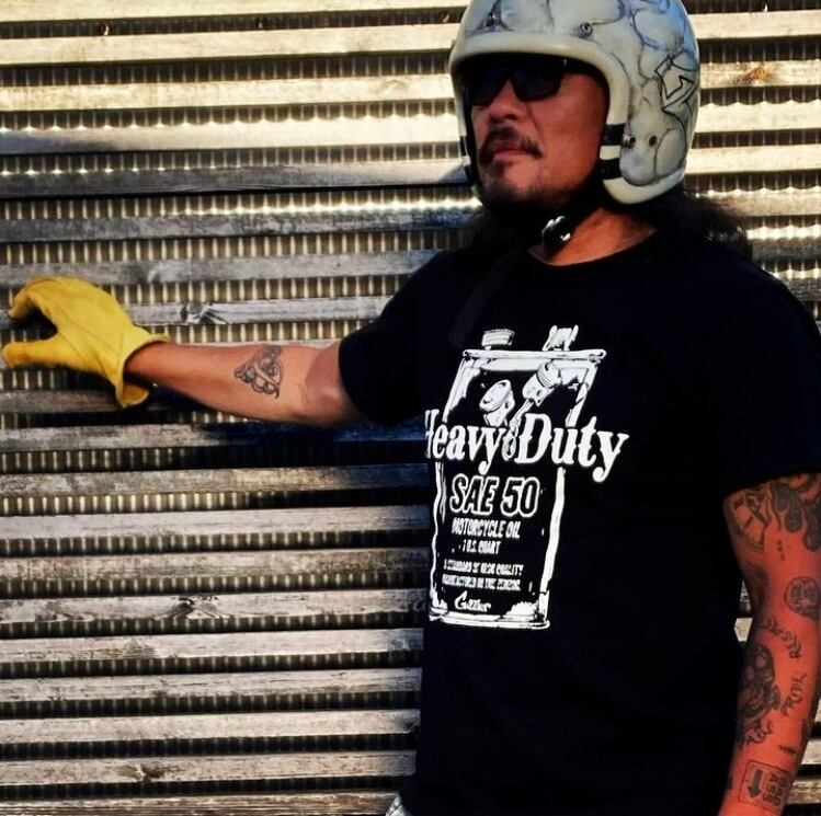前面背面の両面にイラストデザインがあしらわれた、贅沢且つオールドスクールな雰囲気でリアルなバイカースタイルを踏襲。